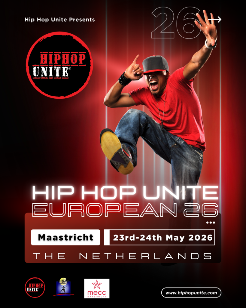 Wil jij met je crew schitteren on stage en de strijd aangaan om een plek te veroveren op het eerstvolgende EK 2026? Deze vind volgend jaar plaats in de MECC in Maastricht. Meld je nu aan en vul de lijst in! Lees de rules en regulations door zodat je goed geïnformeerd bent wat de Hip Hop Unite spelregels betreft. We zien jullie daar op de kwalificatie!